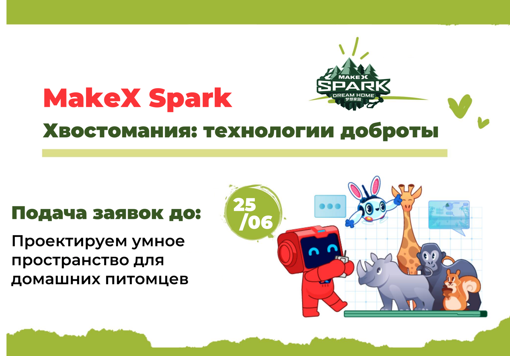 🚀И сразу стартуем! Тема MakeX Spark 2025 — «Хвостомания: технологии доброты». Участники должны спроектировать умное пространство для взаимодействия с домашними животными.