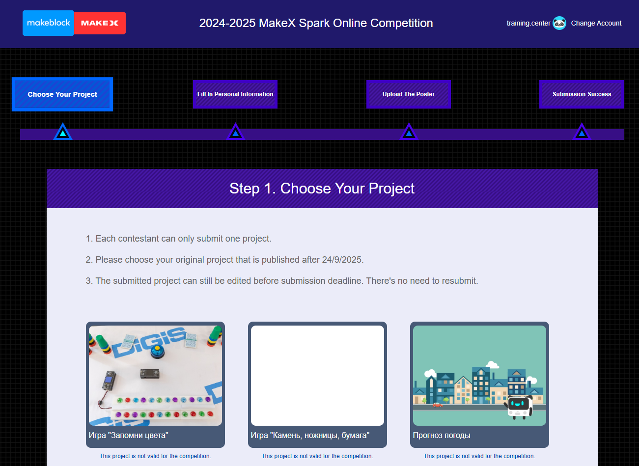 [2] Выберите проект, который вы хотите отправить на конкурс