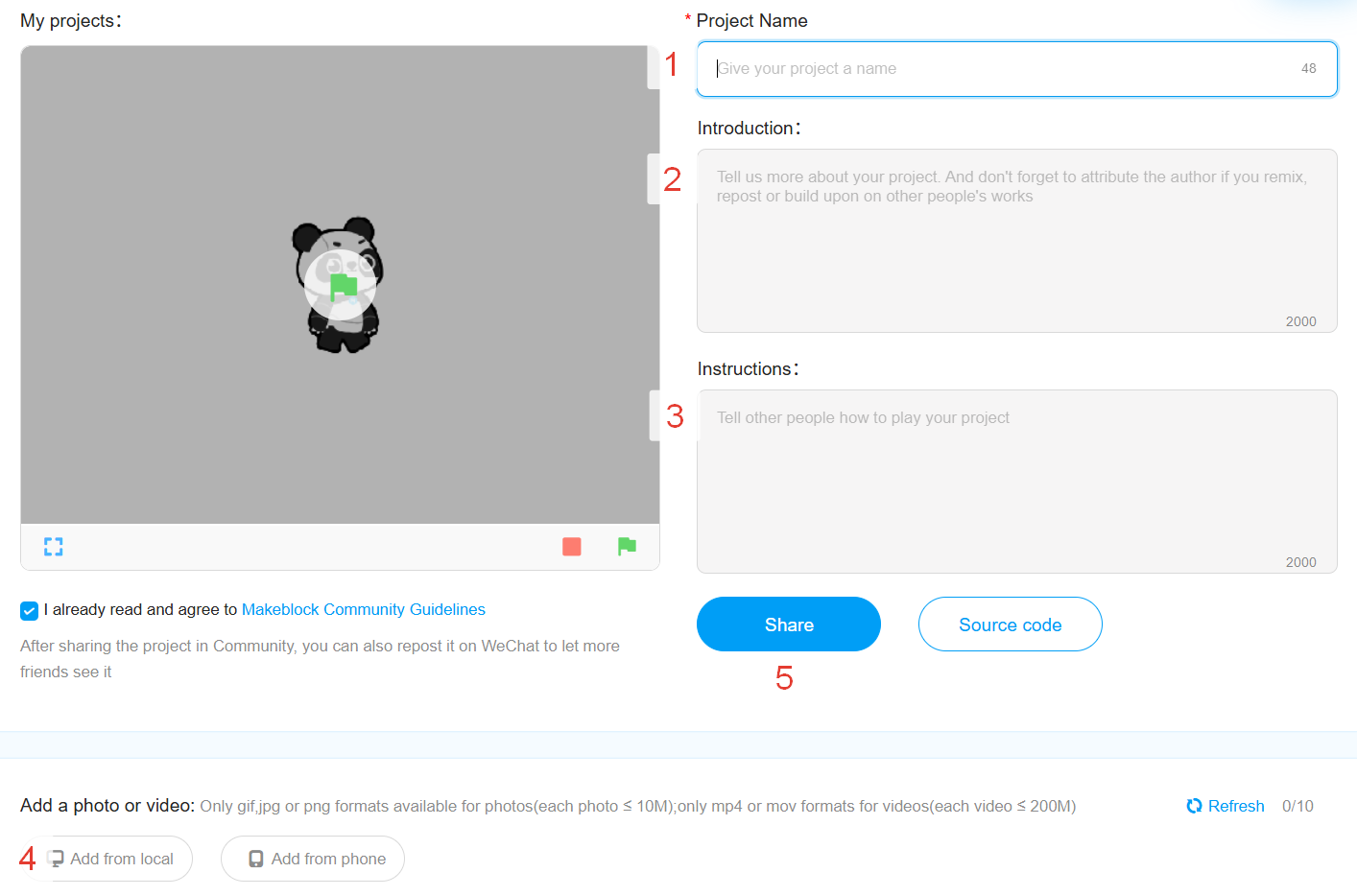 Подготовьте проект в соответствии с требованиями компетенции и опубликуйте на портале planet.mblock.cc